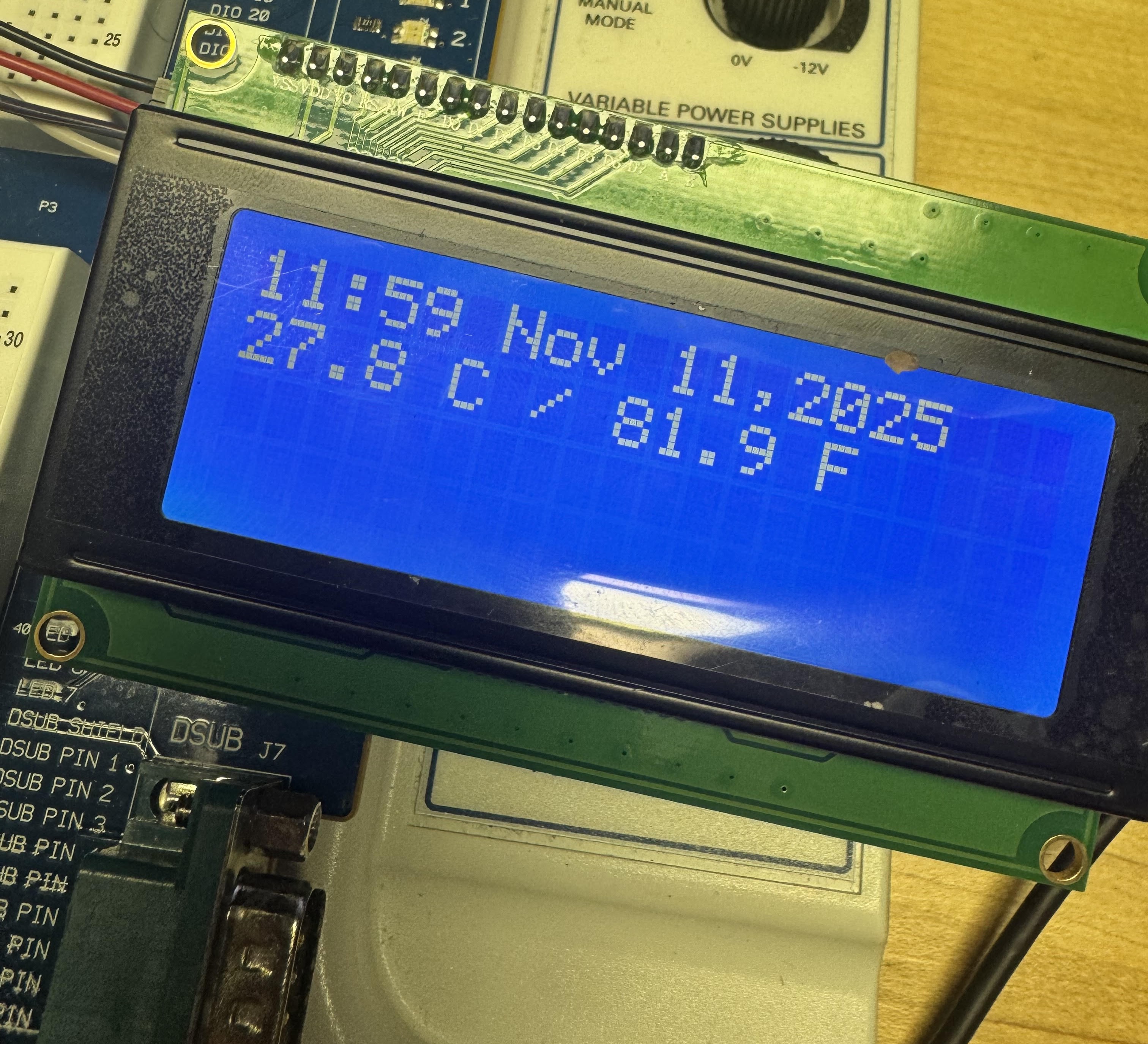 - LCD: 4×20 character LCD via PCF8574T I/O expander.